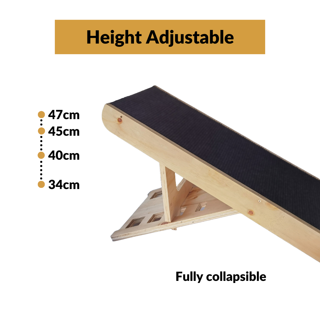 The ramp features four height adjustable settings of 34cm, 40cm, 45cm and 47cm, making it suitable for furniture up to 50cm high. The ramp is 100cm long and is fully collapsible.